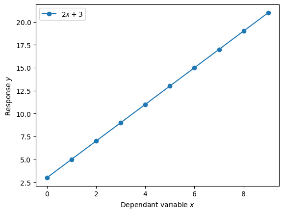A linear model is a prediction (a response) to an input variable. We have the following terms: