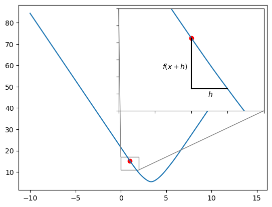 where \(f(x)\) is the loss when \(\beta_1\) takes on the value of \(x\). \(h\) is a very small value.