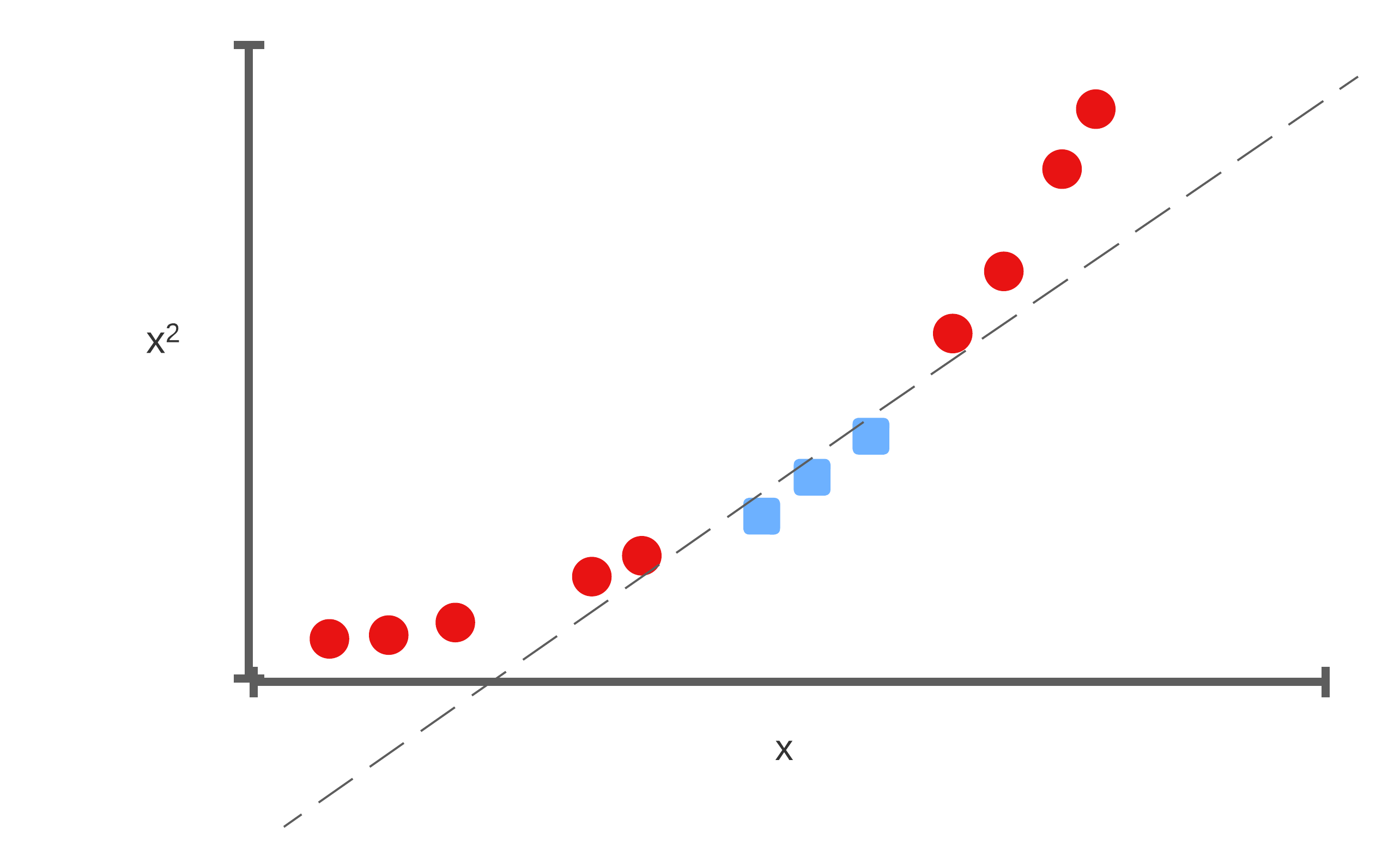 To make the space linearly separable in the previous example, we transformed the data into a higher dimension with the \(x^2\) transformation. But how do we decide which transformation to apply?