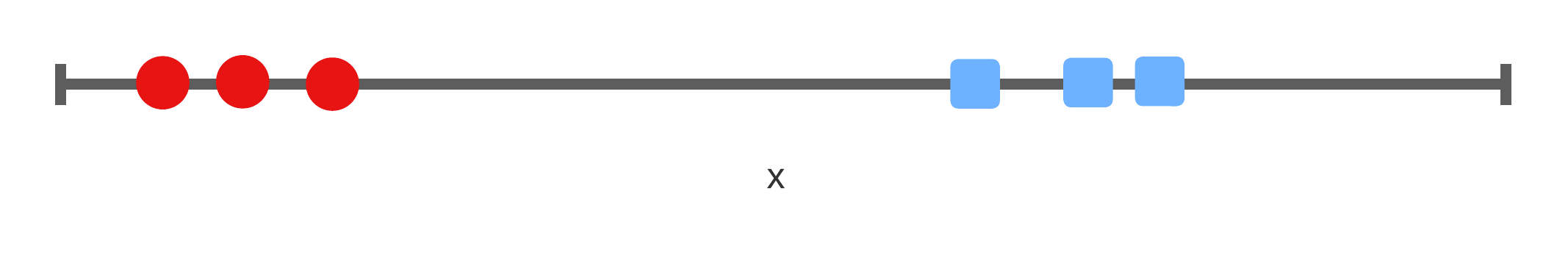 We’ll take this 1-dimensional space, and add another dimension where the y-axis is \(x^2\). Suddenly, we’re able to separate the space: