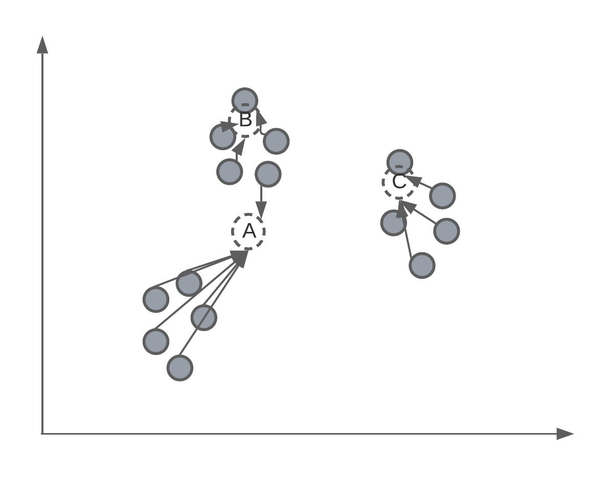 This algorithm is called K-means. In essence, it is an algorithm that finds \(K\) different clusters or groups of points, where \(K\) is defined by the user.