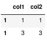 Notice how loc has returned two rows because it sees two rows with the index label of 1. If instead we simply meant: give me the second row we should use iloc: